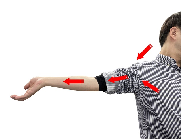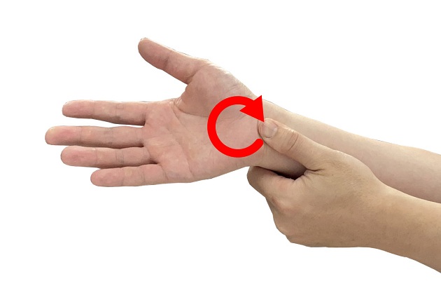 (1)用大拇指往手腕方向按摩前臂內側的筋膜,一天3~6次。