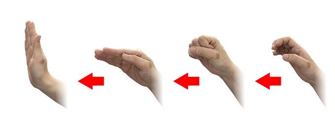掌面往上翹 ← 手微微向上彎 ← 手握拳 ← 手指的第一節彎曲