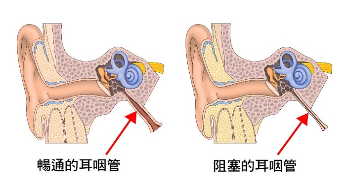 ▲「耳咽管阻塞」使中耳的壓力無法平衡,因此會出現耳鳴、耳悶塞、耳脹痛症狀。